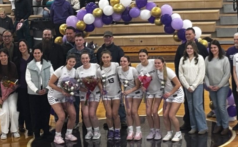 (L:R) Seniors, Lily Mancino, Sarah Decker, Abby Cykosky, Kaitlin Williams, Laura Posdon, and Victoria Latek Photo credit to Tanya Cunningham By: Molly Cunningham             The gym lights felt a little brighter this past Thursday night as six seniors took their home court for the final time against Scranton Prep. The crowd came together, everyone standing…