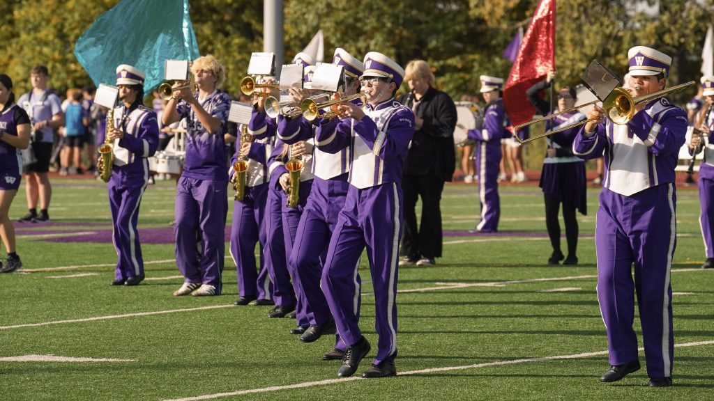 The outdoor pep rally on the high school football field was the pinnacle of the week, with Wallenpaupack Area High School, North Primary, North Intermediate, South Elementary, and the Middle School—filling the bleachers. The Wallenpaupack Area High School marching band kicked things off, performing a medley of songs including “Prologue/Little Shop of Horrors,” “Fantasmic Part 2,” “Aladdin,” and “Go the Distance.” Their crisp formations and powerful sounds drew cheers from the crowd and set the stage for the rest of the rally.