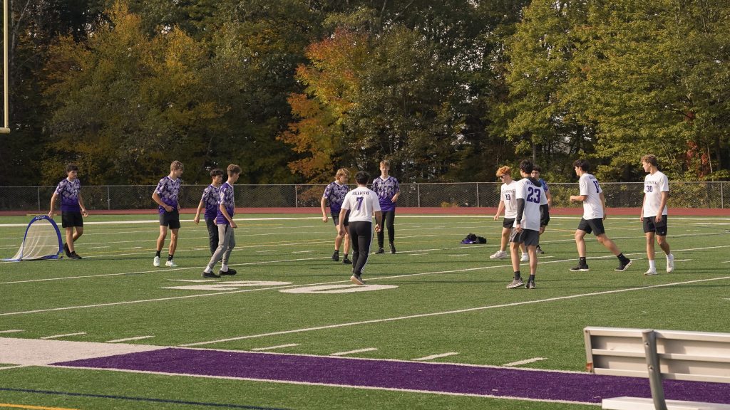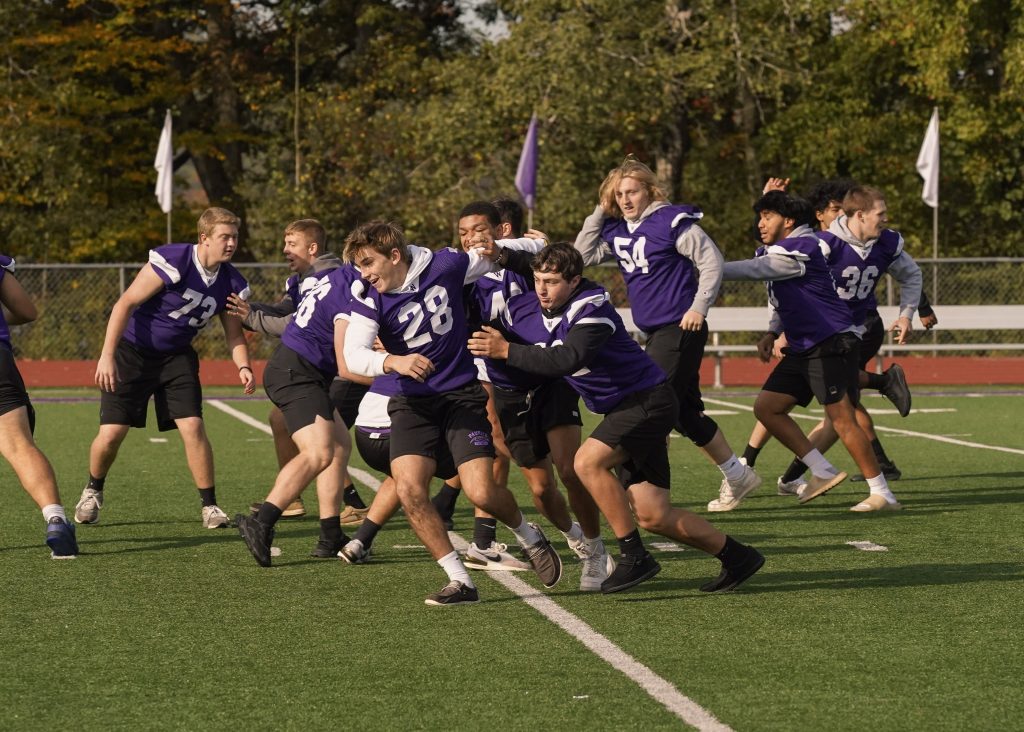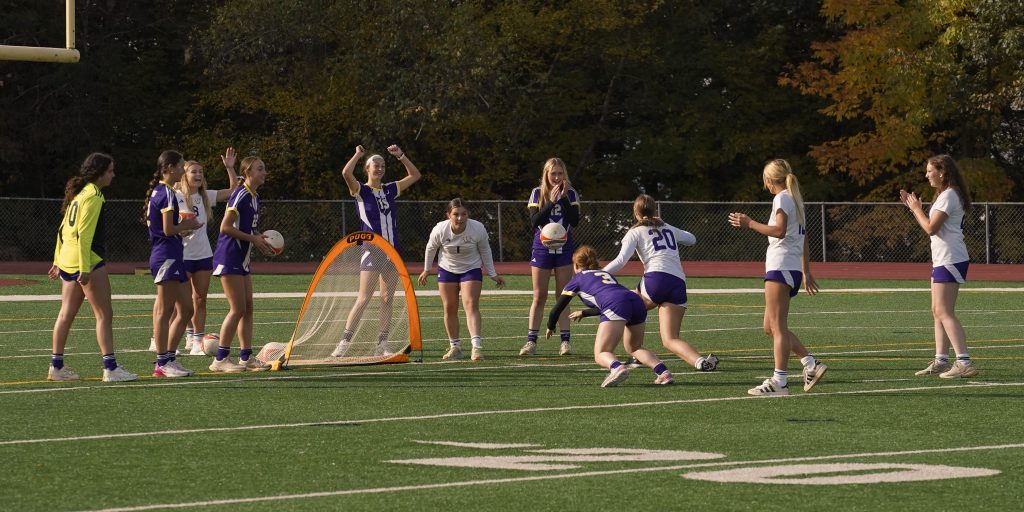 After the band, the high school sports teams took center stage, each keeping the audience engaged with creative skits. The boys’ and girls’ soccer teams had the crowd laughing with clever routines, while field hockey and cross country kept the energy high with their energetic and lively performances. The tennis team brought their own fun, and the football team closed the rally with a skit that pumped up the crowd for the upcoming game. Each team held the audience’s attention from start to finish, combining humor and team spirit to create a rally that highlighted both the school’s athletic and creative talents.