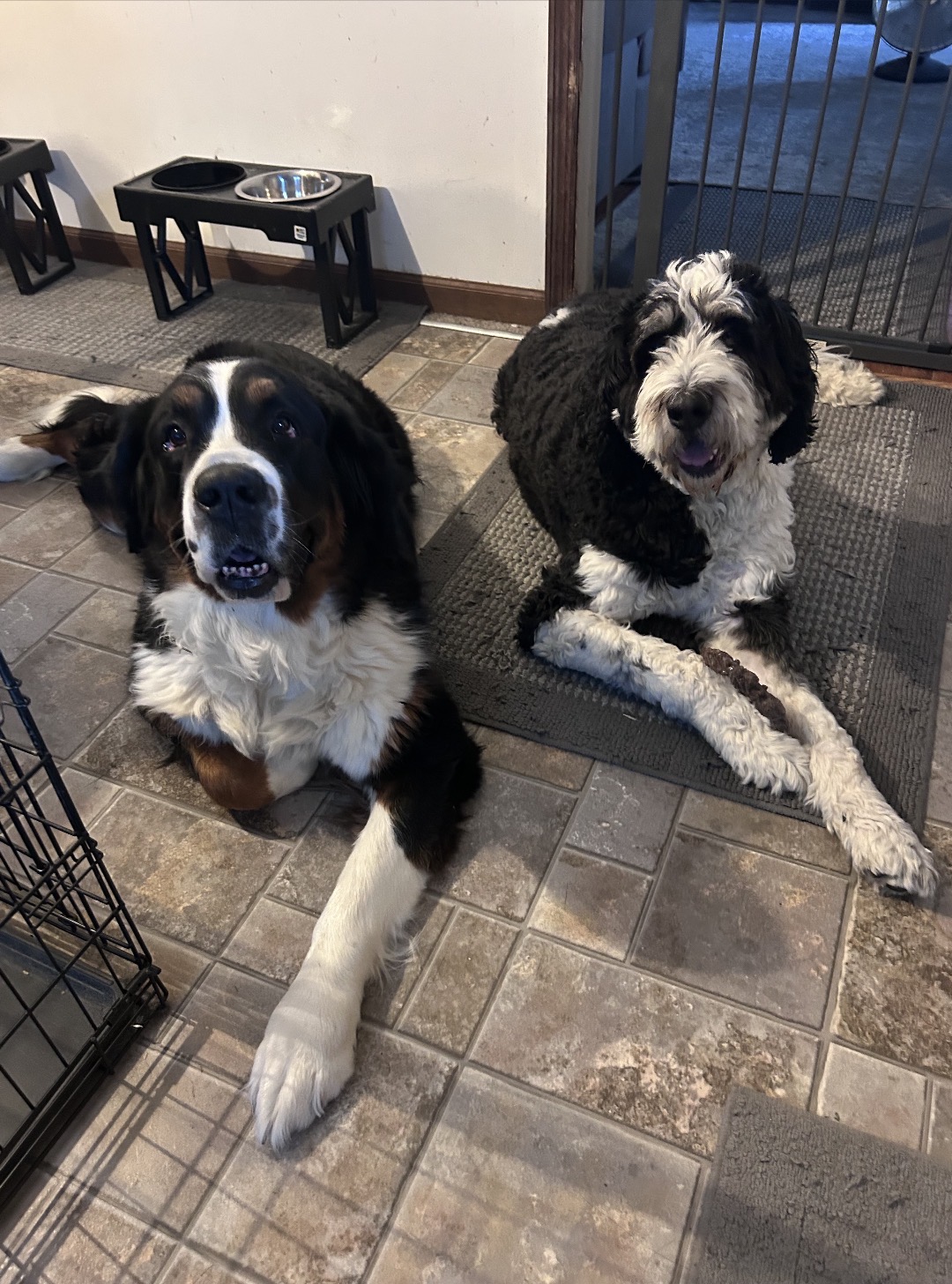 Mrs. Monte’s girl Rhys is a Saint Bernese (so she is a combination of a Saint Bernard and a Bernese Mountain Dog. Harper is a Saint Bernadoodle (she is a combination of a Saint Bernard, Bernese Mountain Dog and a Standard Poodle. They are big girls—Rhys weighs 120 pounds and Harper weighs 110 pounds—with big hearts🩷🩷. Fun Fact—Rhys is actually Harper’s Aunt.