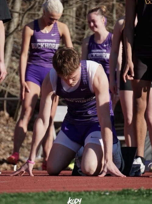 Picture Shown- Bryce Pagano ready to race the 100 meters